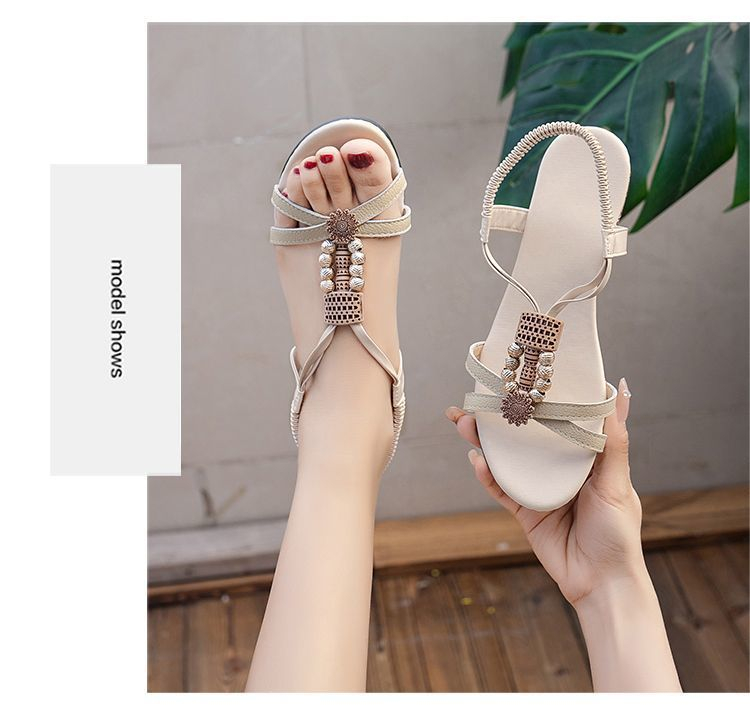 新作サンダル、夏用アウトドアビーチシューズ、女の子用ワンワードバックルサンダル、女性用ローマサンダル
