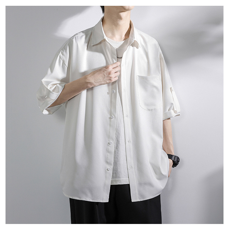 アイスドレープファッションシャツ 夏のルーズカップル薄手半袖シャツ タイドシャツ五分袖カジュアルシャツ