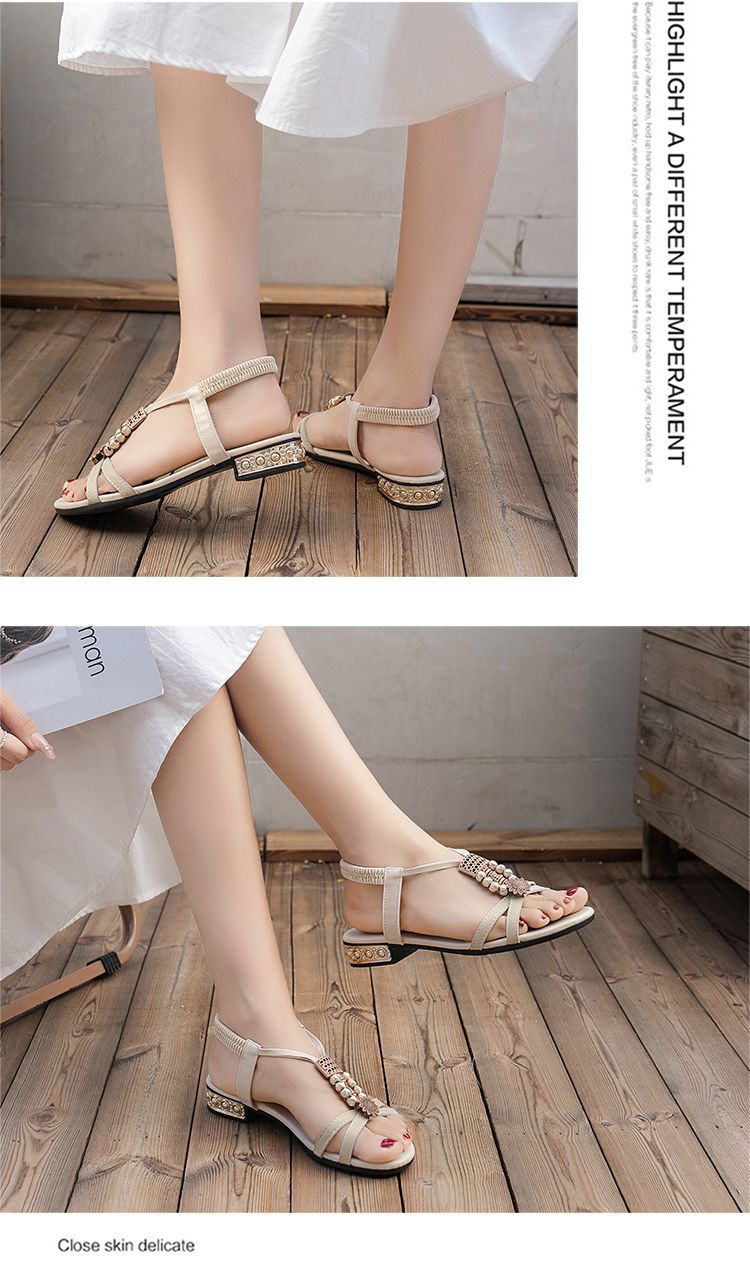 新作サンダル、夏用アウトドアビーチシューズ、女の子用ワンワードバックルサンダル、女性用ローマサンダル